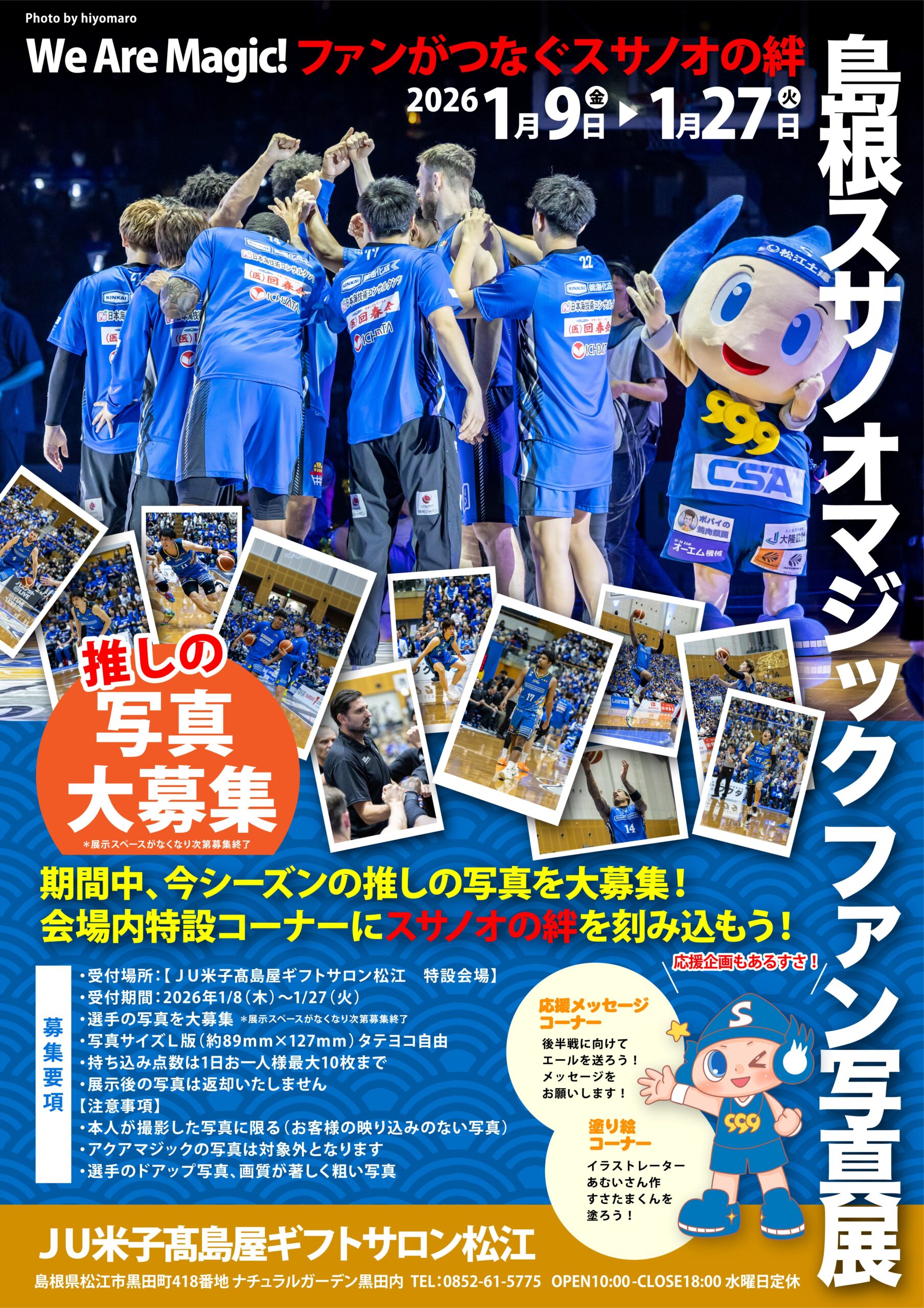島根スサノオマジックを愛するファンの想いが集まる「ファン写真展」を開催します。