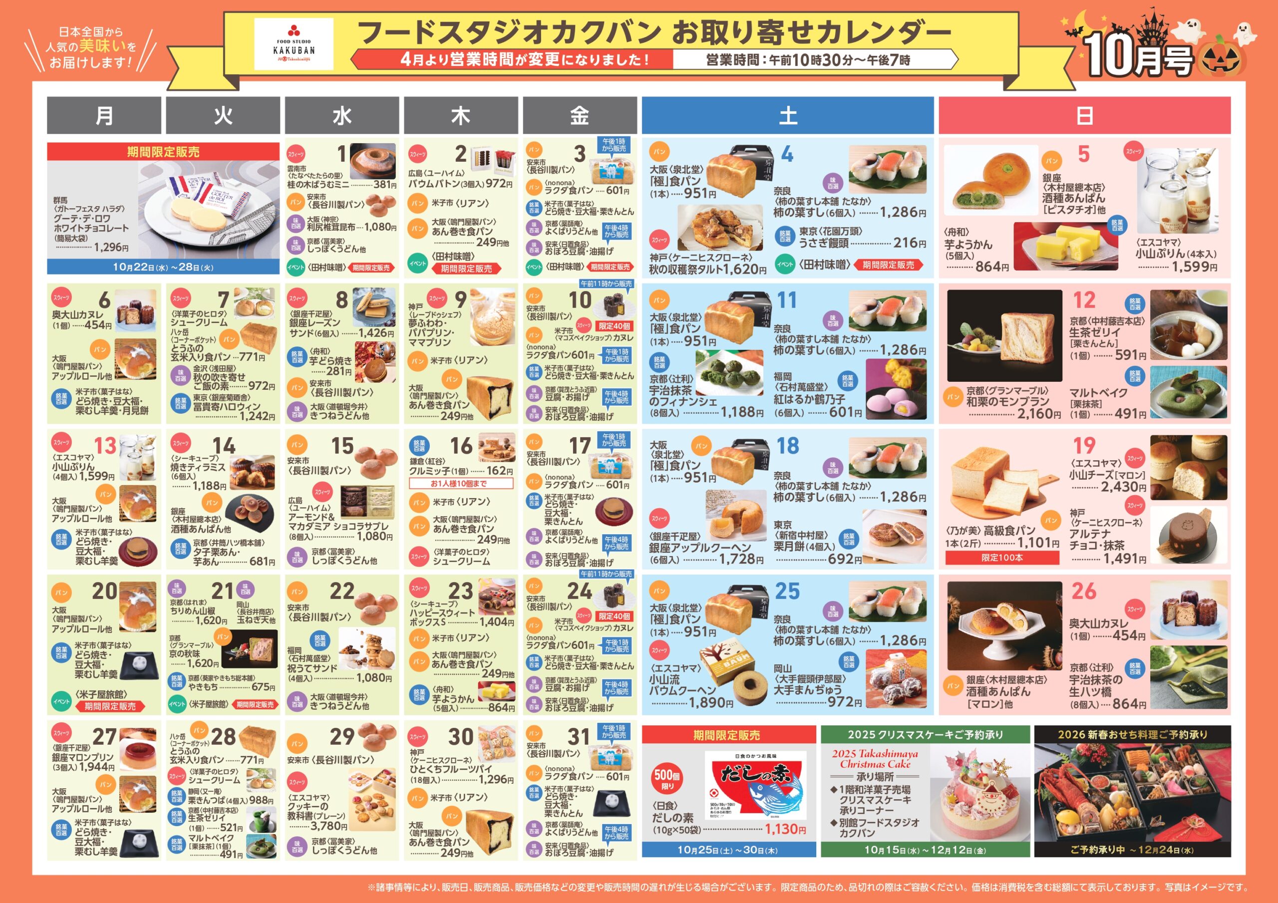 10月のフードスタジオカクバンカレンダー